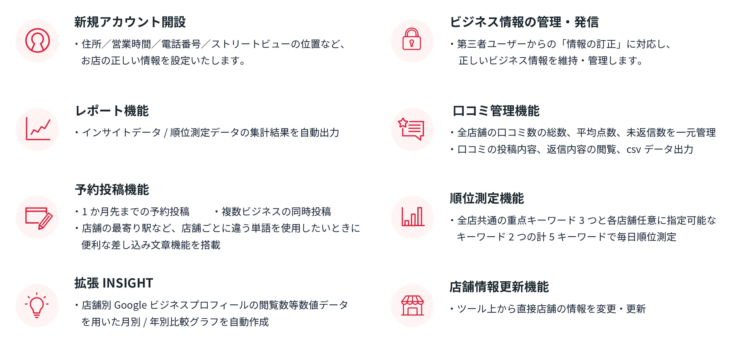 「上位に表示された店舗だから行きたい」のではなく、「表示された店舗が魅力的だから行きたい」というのがユーザーの心理です。そのために重要なのが、Googleビジネスプロフィールのコンテンツの充実です。