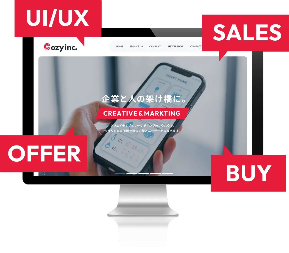会社や商品・サービスの魅力を表現するために完全オリジナルデザインで、使いやすいUIにより、ユーザーの心をグッとつかむWebサイト制作を行います。私たちはお客様または商品の強みや差別化要因を、競合と比較しながら、見込み客の目線で見つけ出し、Webサイトで表現していきます。